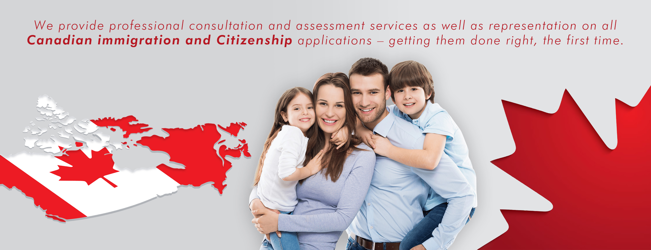 We provide professional consultation and assessment services as well as representation on all Canadian immigration and citizenship matters, assisting individuals interested in obtaining Canadians citizenship or immigrating to Canada for business, work, travel, family reunification or study.